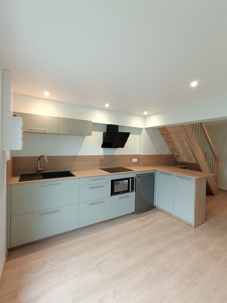 Dans son atelier de 100 m², il consacre un espace entier à la cuisine, conçoit ses projets sur SketchUp et assemble avec précision meuble standards et éléments en PSM pour créer des dressings, meubles TV ou salles de bains sur-mesure.