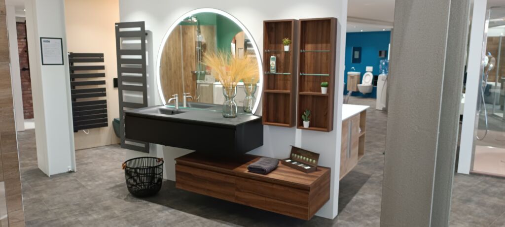 Parmi les collections DISCAC, Quentin a un véritable coup de cœur pour la gamme RIVAGE, qu’il a choisie en noyer et en 120 cm pour la salle d’exposition de Champniers. Un modèle à la fois élégant et chaleureux, parfaitement adapté à l’esprit du showroom